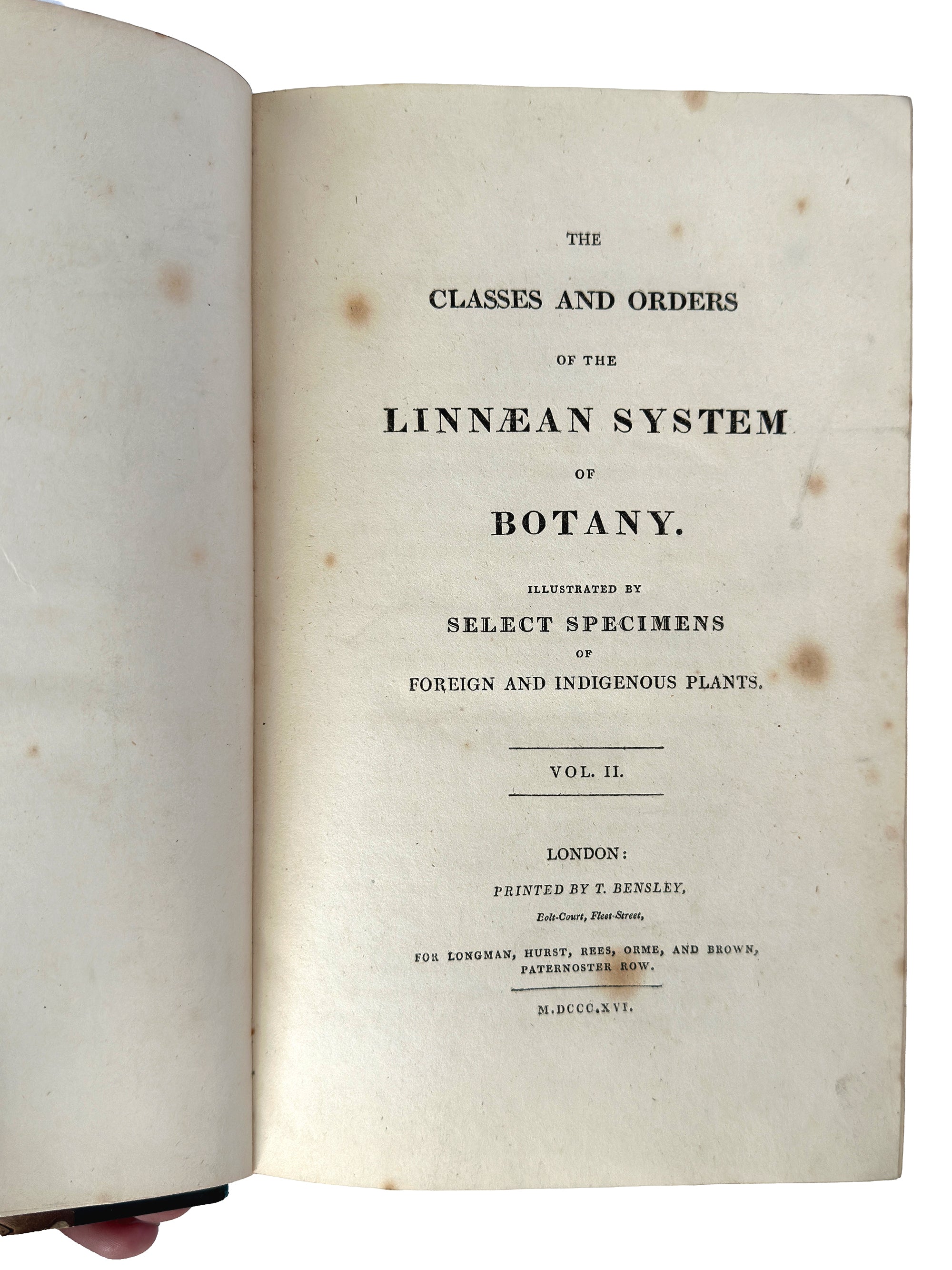Printed by Thomas Bensley, one of London’s most esteemed presses, and published by Longman, Hurst, Rees, Orme & Brown, this work was created at a moment when science and aesthetics were inseparable. Its purpose: to translate Carl Linnaeus’s groundbreaking classification system into a richly illustrated, accessible visual guide for scholars, collectors, and the growing botanical elite of the 19th century.