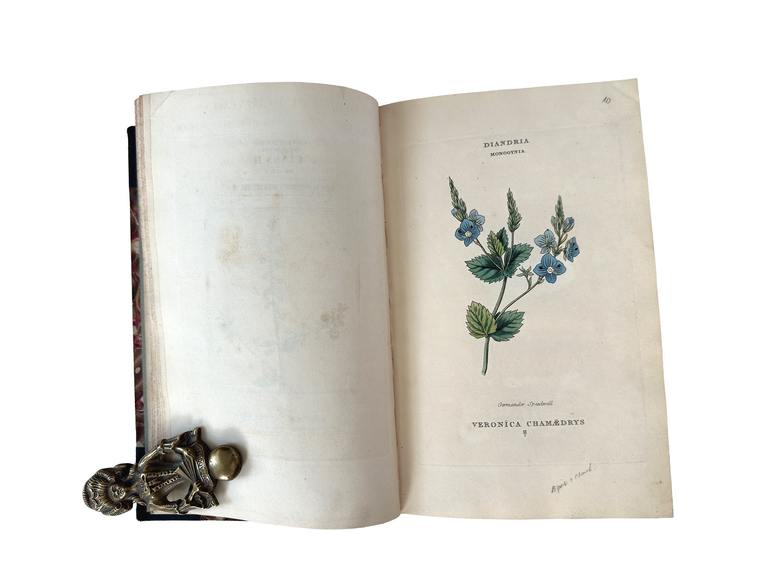 Across all three volumes, readers are met with delicately hand-colored engraved plates, each featuring a meticulously rendered plant specimen—petals, stems, and foliage lightly washed in watercolor by hand. These illustrations bring together British native species and newly discovered exotics arriving from global expeditions of the era. Every plate is both scientific and poetic—exact in structure, yet warm and alive with early-Victorian artistic finesse.