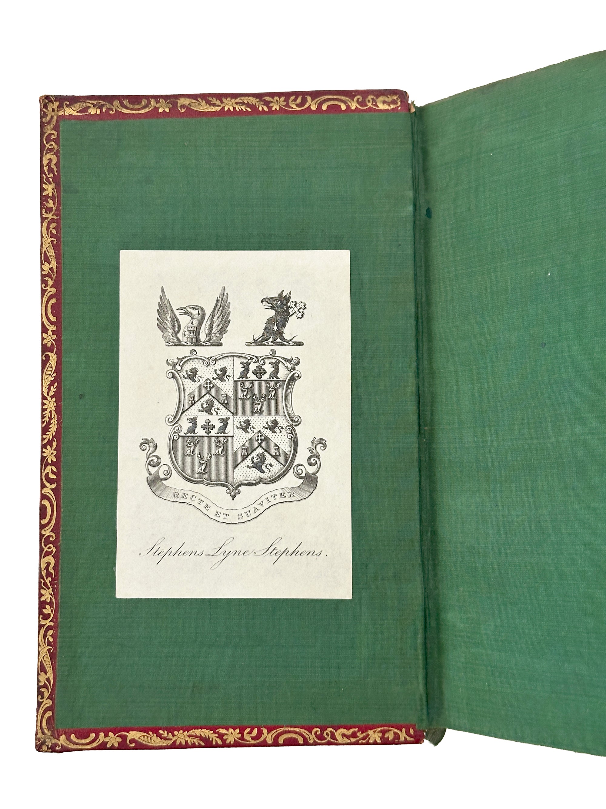 Further adding to its layered provenance, the interior bears the armorial bookplate of Stephens Lyne Stephens (1801–1860), an English politician and one of the wealthiest commoners of his time, known for assembling an important private library. This later ownership connects the book to 19th century English collecting culture, extending its story beyond France.