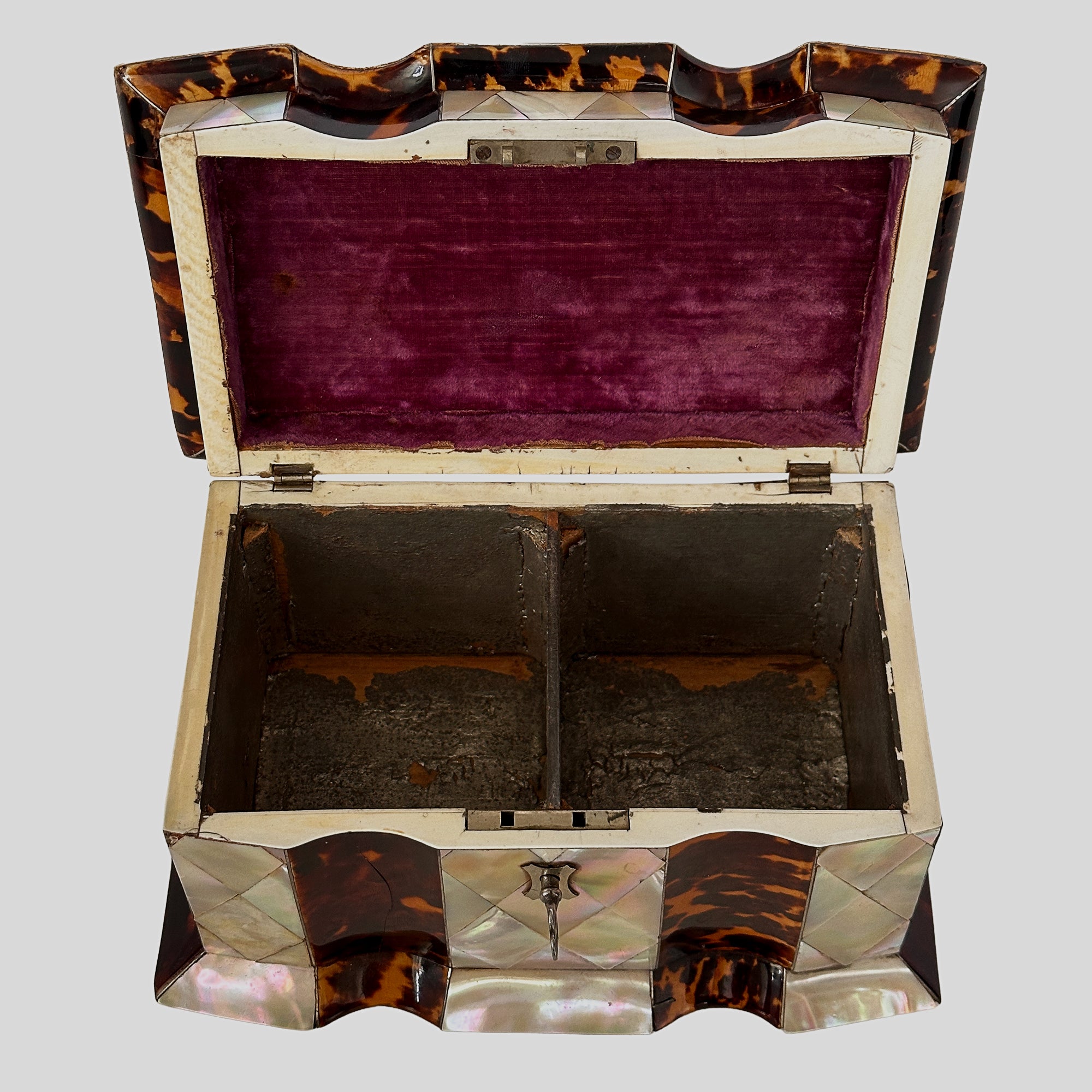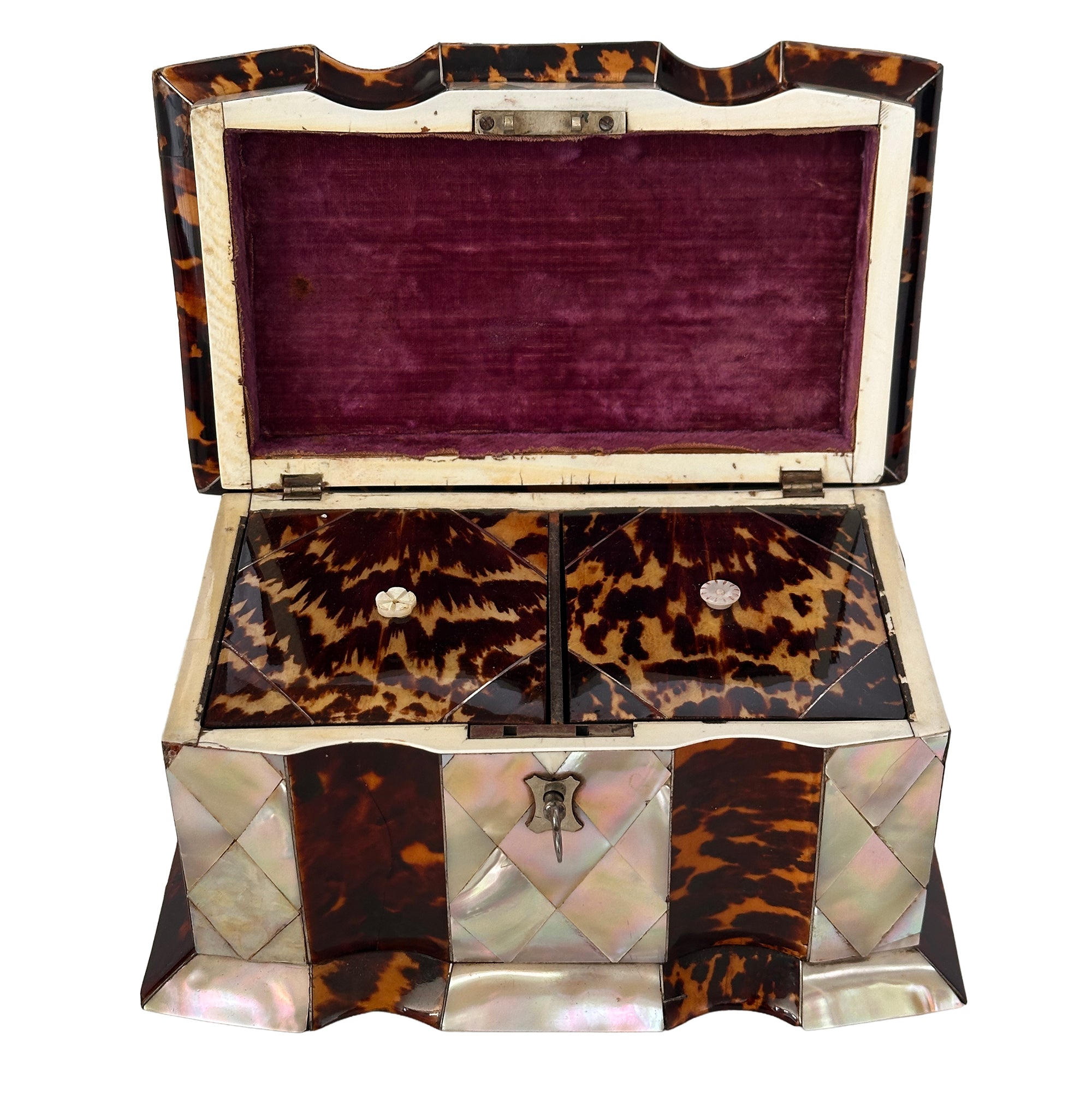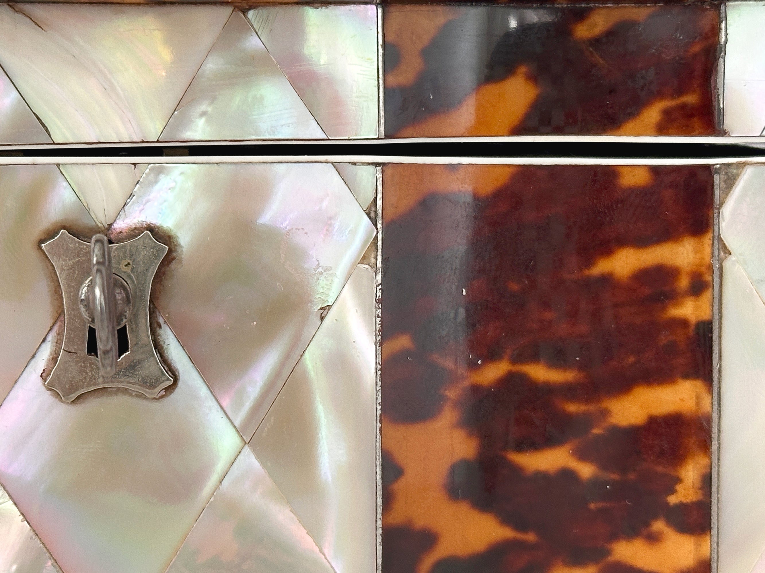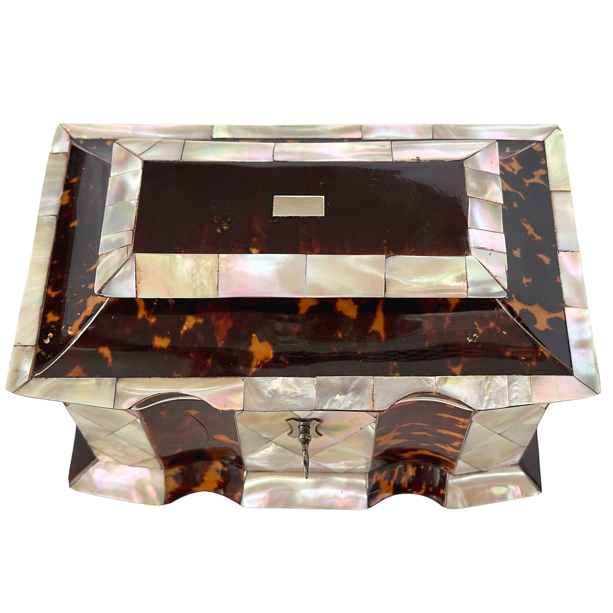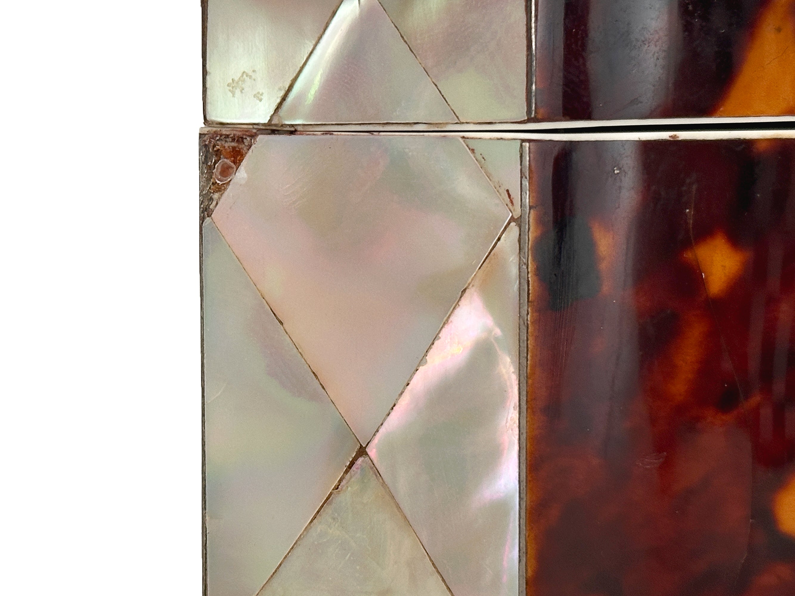 Early 19th Century English Tortoiseshell and Mother of Pearl Tea Caddy Circa 1820-1840