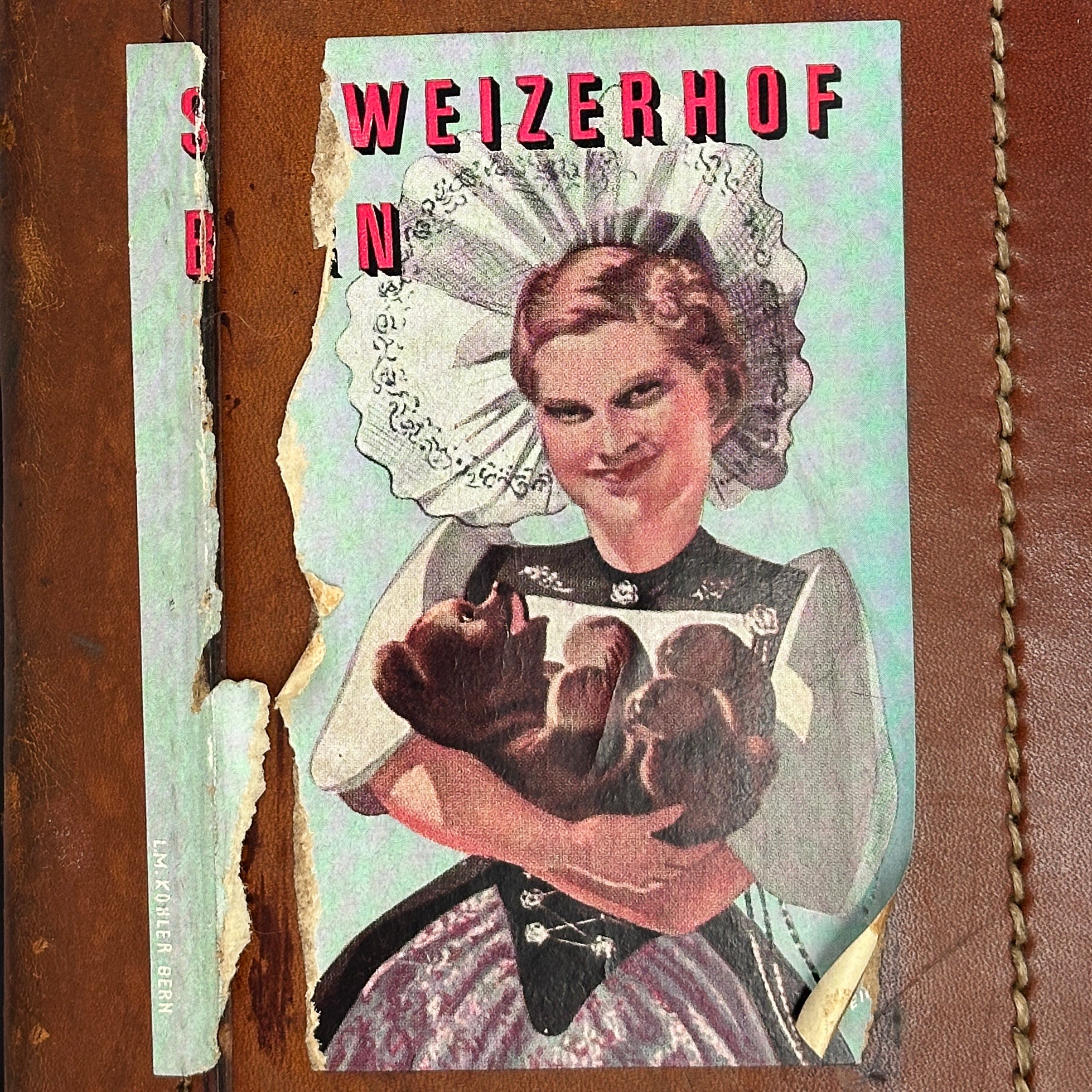 The figural label design, featuring traditional Swiss imagery, reflects early 20th century graphic design and regional identity. These paper labels were often lost over time, making intact examples like this increasingly scarce and desirable.
