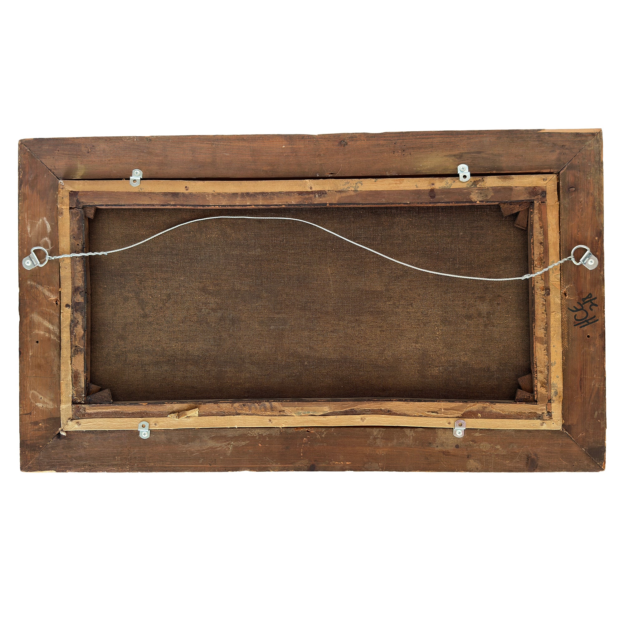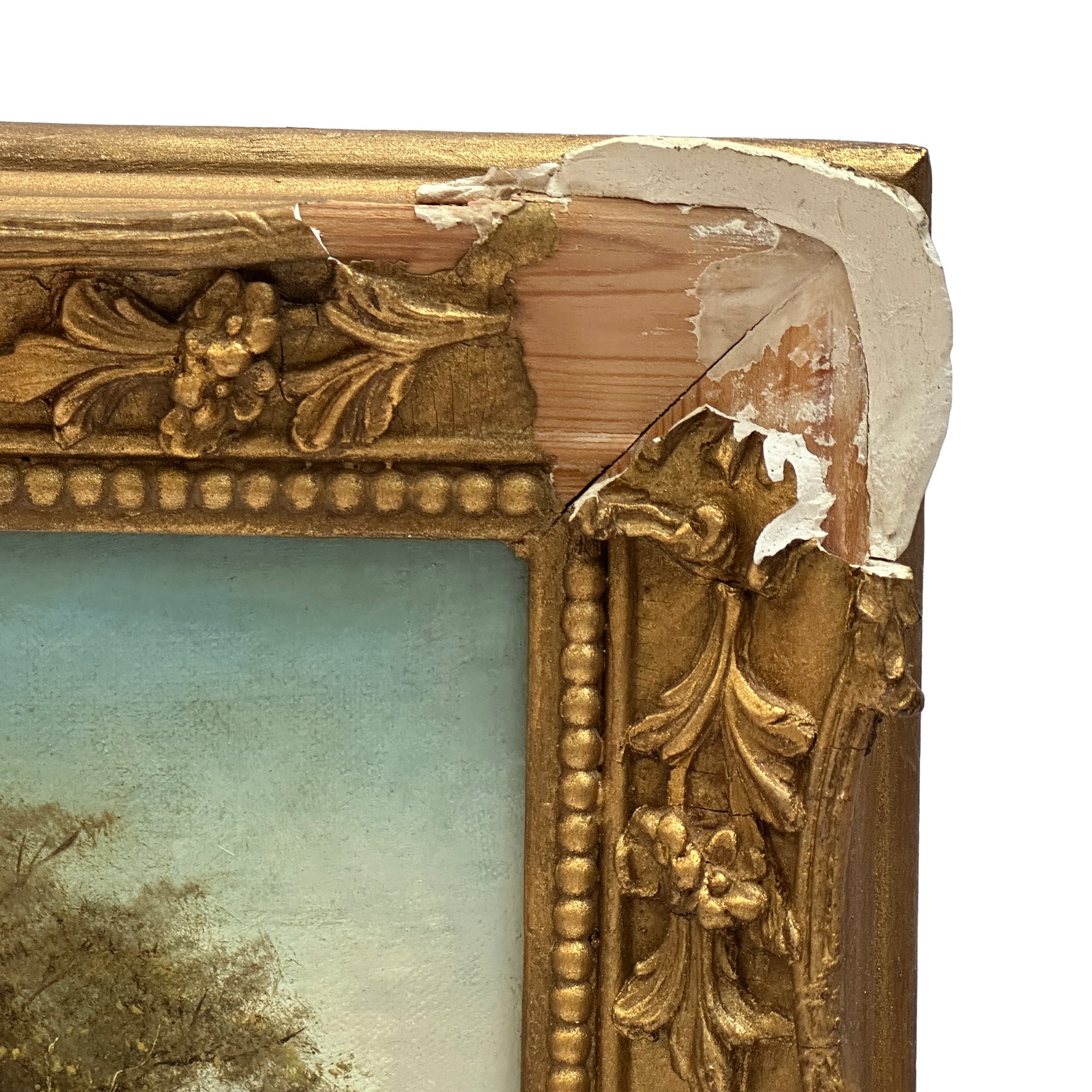 Housed in an ornate giltwood frame with classical floral and foliate detailing, which beautifully complements the painting’s tone and scale.