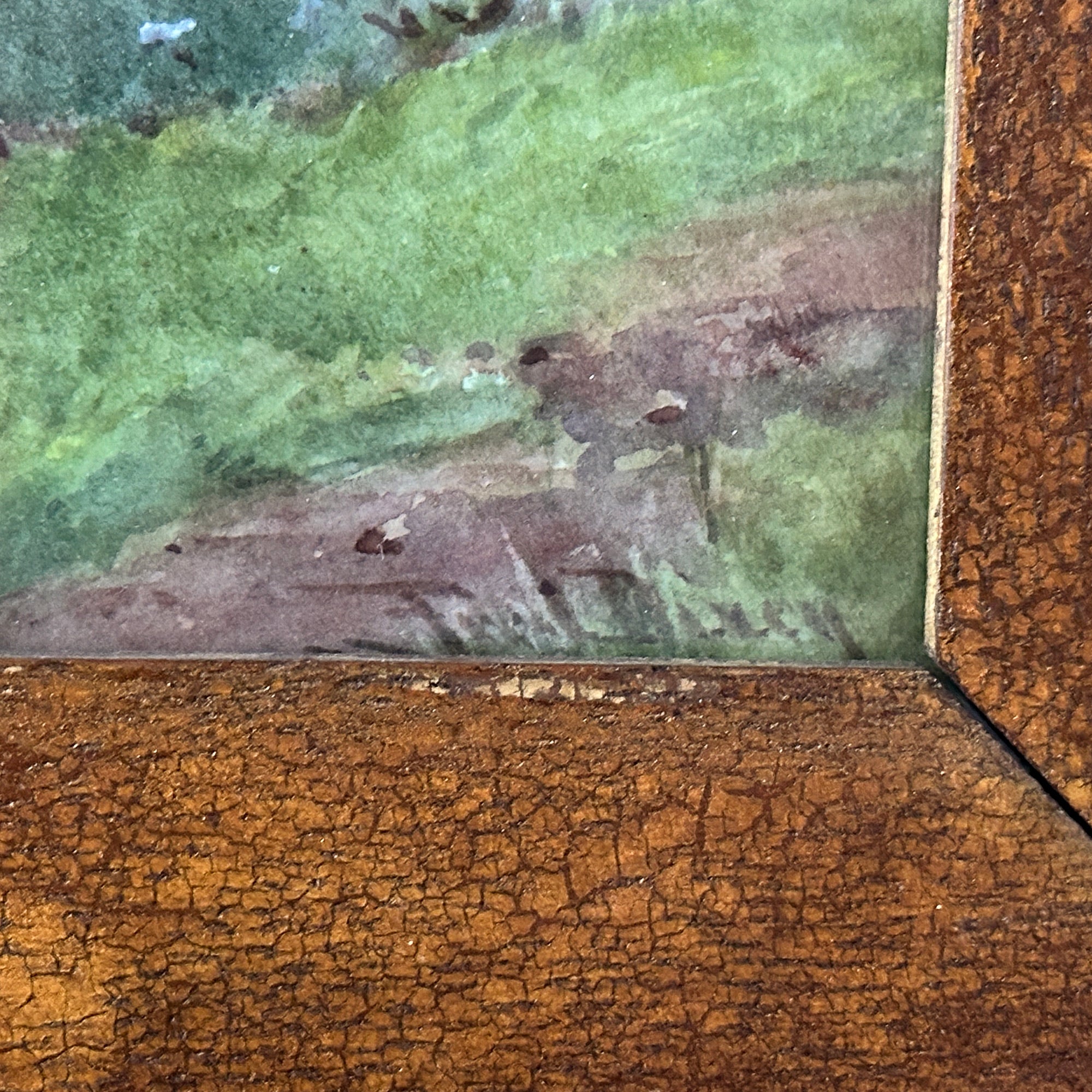 The painting is presented in a period oak frame with its original backboards intact, adding to its authenticity. Works such as this, by regional watercolorists like F. Dixon, were prized during the Victorian era for their romanticized vision of rural England — idealized landscapes that spoke to nostalgia, peace, and the timeless charm of nature.