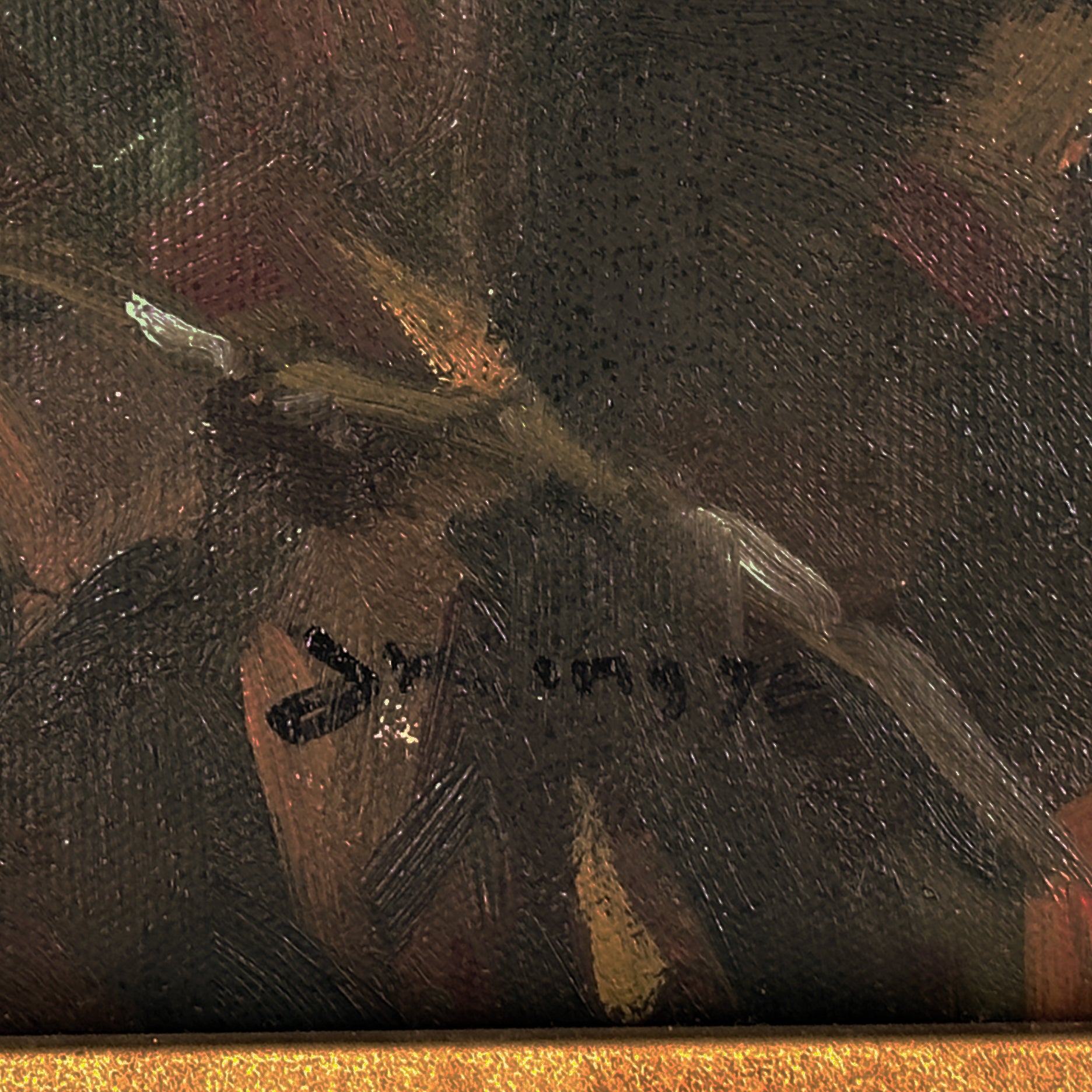 Housed in an ornate gilt frame that enhances the drama and scale, giving the piece a true statement presence within a space.